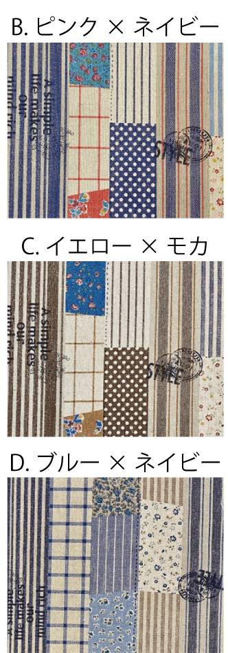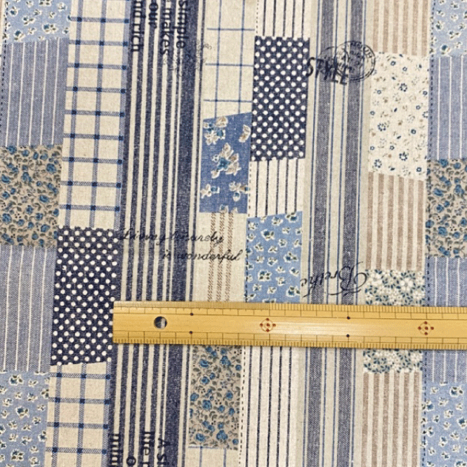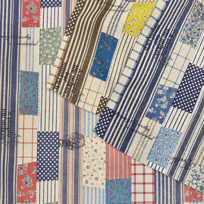 カントリー調パッチ柄の綿麻キャンバス生地。